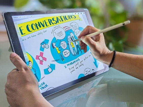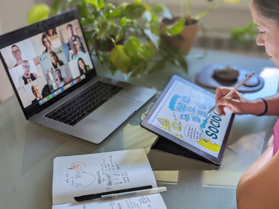 In our Learn Fox Labs workshop, we partner with Marina Roa Visual Thinking, a visual facilitator and illustrator. Marina takes visual notes ‘live’ transforming your team’s ideas into real-time digital illustrations in your brand colors.
